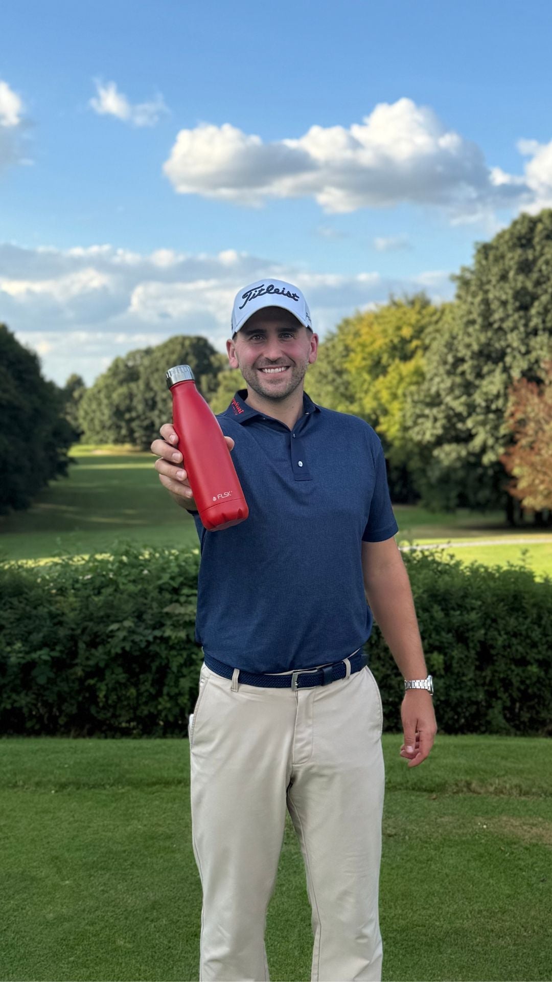 Con la borraccia FLSK, la sua acqua minerale rimane frizzante e fresca fino al tee shot finale. Questo è particolarmente importante, dato che fa affidamento su una corretta idratazione durante le sue intense sessioni di allenamento.